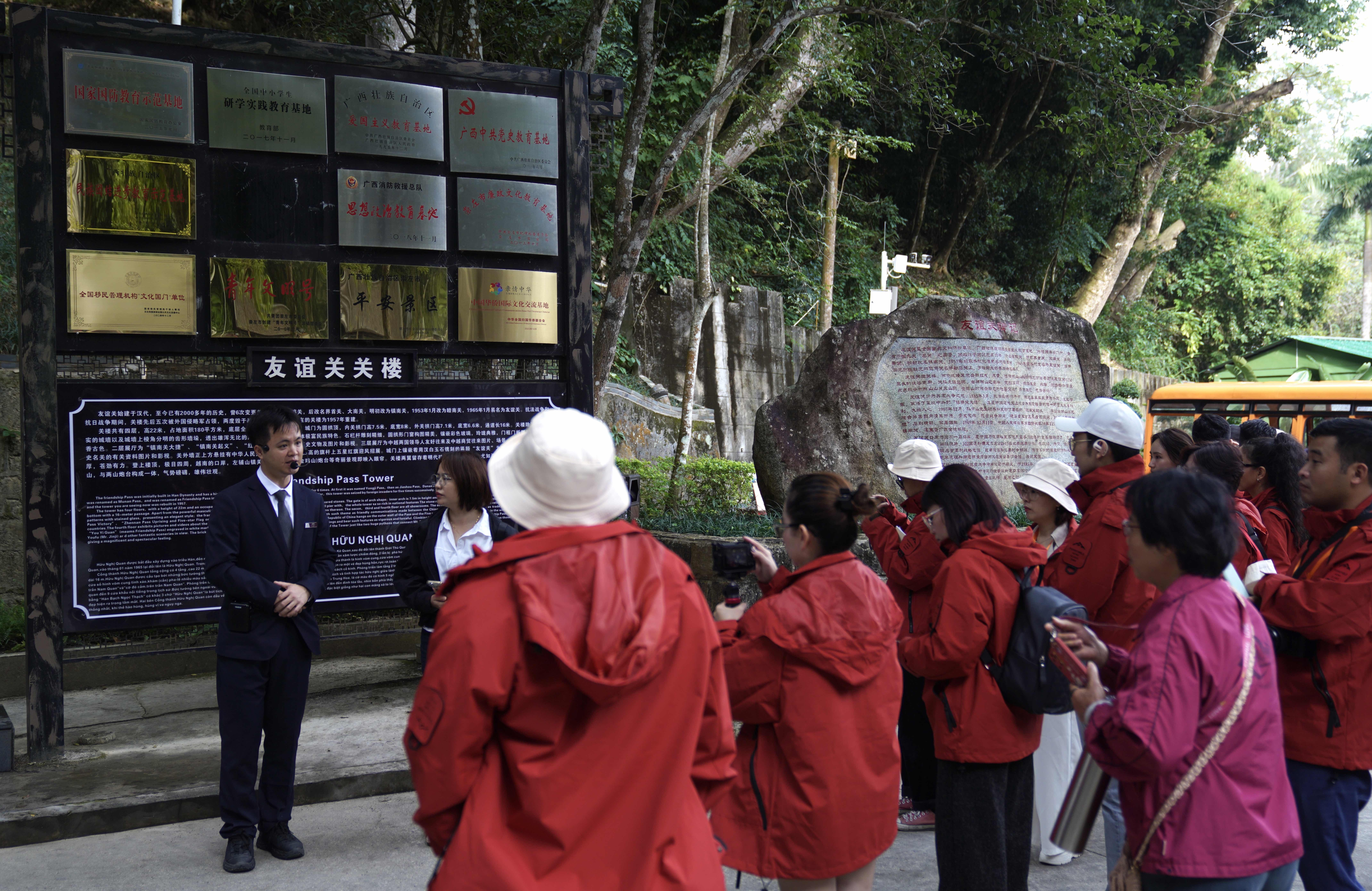 本年正巧中国与越南建交75周年,亦然中越东说念主文交流年。12月23日,中越友好采风行行径开动,超30位中越媒体从业者、学者参与。首站聚焦广西凭祥,拜谒友谊关、龙州举义顾忌馆等地。 边境小城,陈旧关隘,历史的思路与当代的往复交汇。在友谊关前,不少越南媒体从业者、学者安身凝望,相互交流。